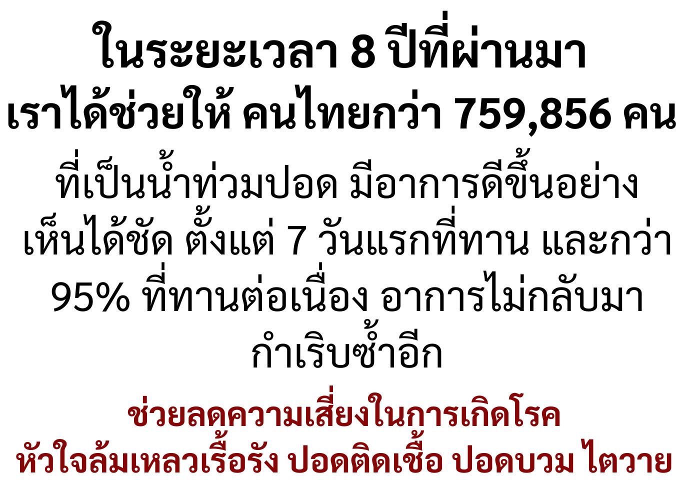 จนตอนนี้หมอไม่ได้ให้ยาแล้ว ป้ารู้สึกโชคดีมากที่เจอพี่ปา และยาตัวนี้ที่ทำให้ป้าหายจากน้ำท่วมปอด โดยไม่ต้องกินยาเป็นกำๆ ให้ตับ ไต พัง ต้องขอบคุณพี่ปาแกจริงๆ ทุกวันนี้ก็ไปมาหาสู่ เป็นผู้มีพระคุณคนหนึ่งในชีวิต รู้สึกว่าหลุดพ้นจากโรคเวรโรคกรรมนี้สักที