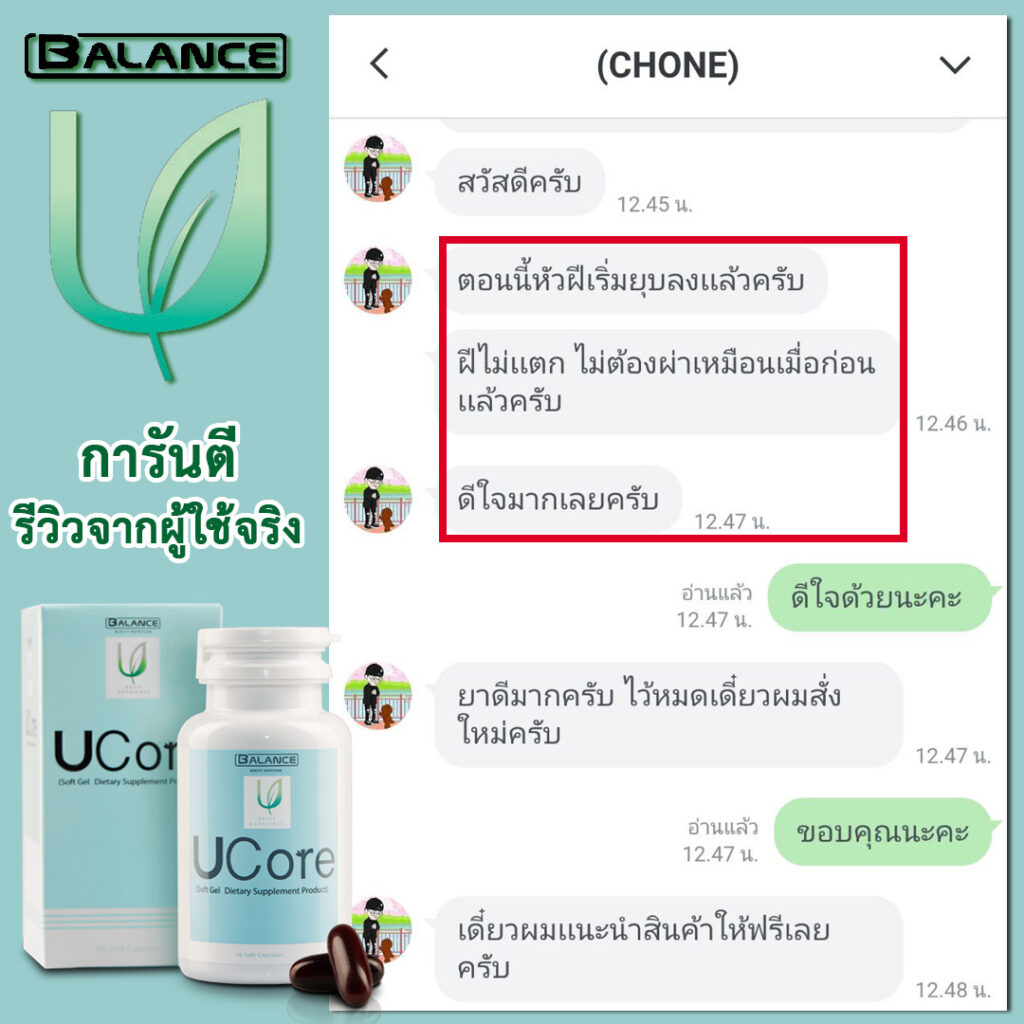 ตอนแรกยอมรับว่าไม่เชื่อค่ะ แต่ก็อดคิดไม่ได้ว่า ถ้ายังรักษาแบบเดิม ผลลัพธ์ก็ต้องเหมือนเดิมแน่ ๆ พรจึงหาข้อมูล Balance U Core ทาง Google เพิ่ม และได้พบว่ามีรีวิวผู้ที่ทานแล้วอาการดีขึ้นเยอะมาก รวมถึงมีหมายเลข อย. และฮาลาลด้วย