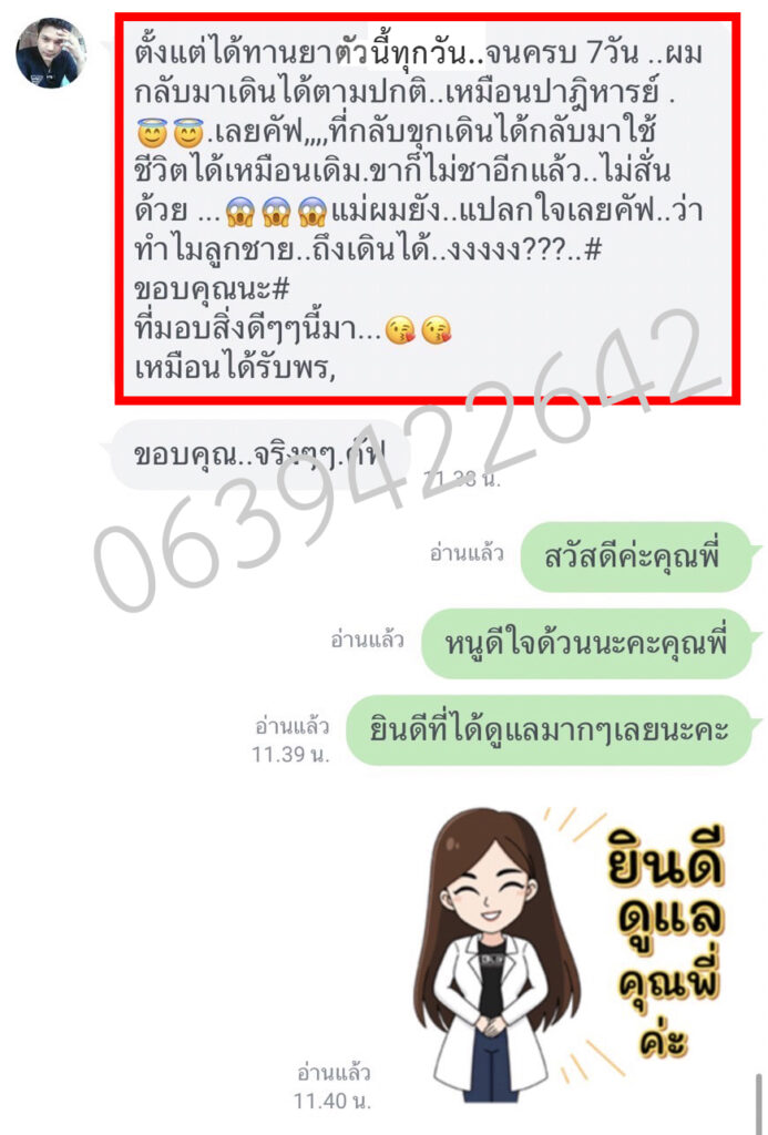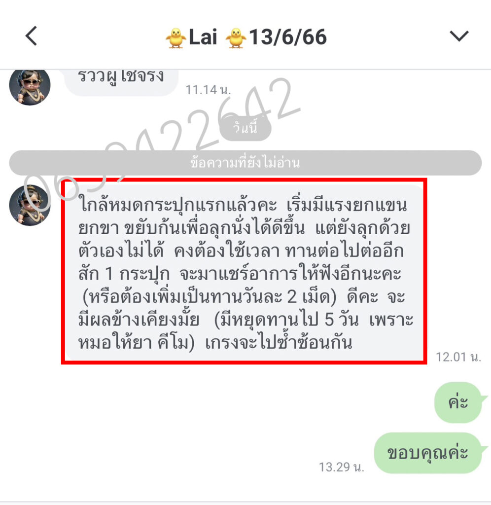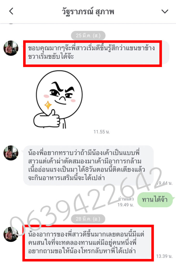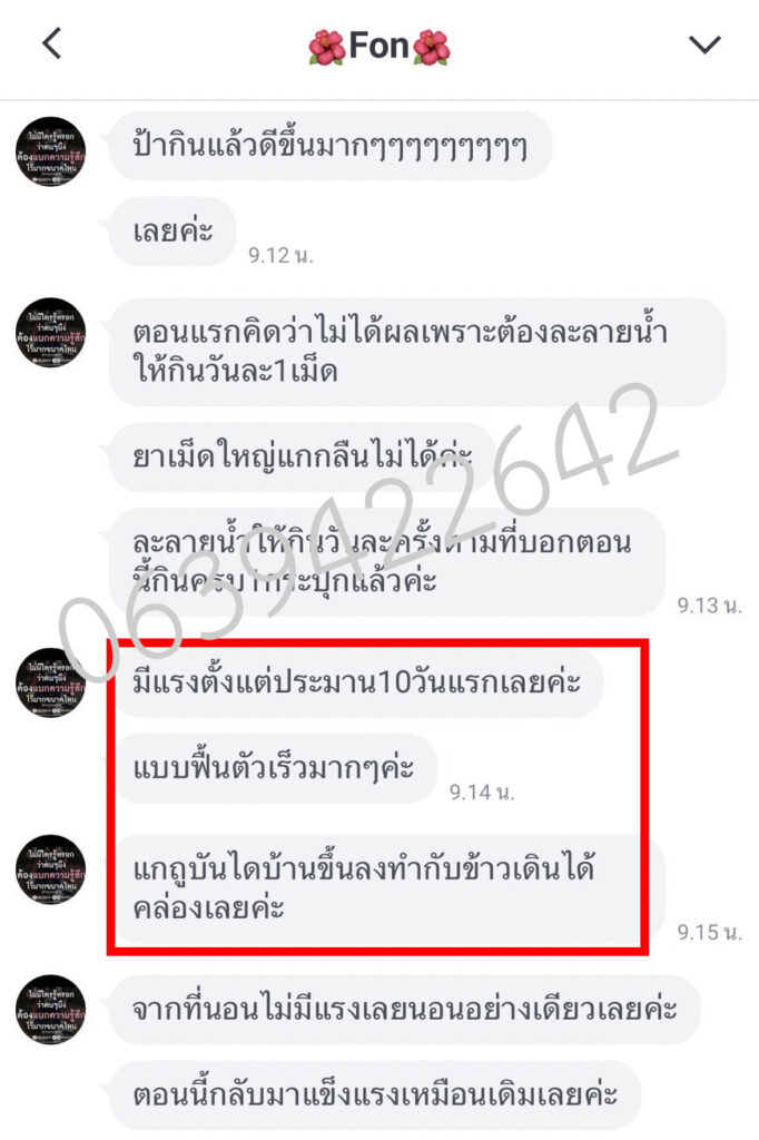 ผลลัพธ์หลังจากทานได้ 5 วัน คืออาการกลับดีขึ้นเฉย รู้สึกไม่ค่อยอ่อนแรงบ่อยเหมือนแต่ก่อน พรจึงตั้งใจทานต่อเนื่องจนหมด แทบไม่น่าเชื่อ! อาการกล้ามเนื้ออ่อนแรงที่เป็น ๆ หาย ๆ มานาน ไม่กลับมากวนใจพรอีกเลย พรดีใจมาก ๆ